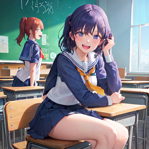 個性的な制服を着て教室で爆笑している女子高生のフリー画像素材、とても性格が明るそうな美少女
