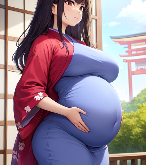 胸もお腹も大きい美人な妊婦さんの2次元フリーイラスト画像素材、赤ちゃんに母乳をあげるのに最適な体型